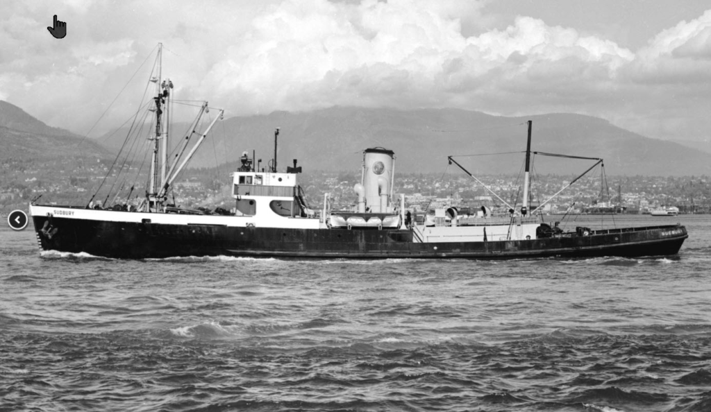 Sudbury towed the disabled vessel for 40 days through some of the roughest weather imaginable before arriving safely at Vancouver. The incident made headlines around the world and for the next decade Sudbury was one of the most famous tugs on the Pacific coast.